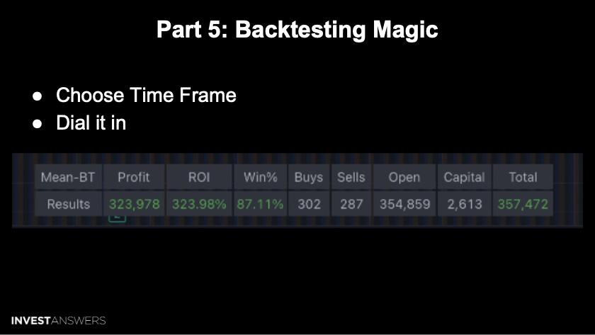The Mean Reversion indicator comes with a backtesting feature. Depending on your trading style, you can dial in the model to fit you from a scalper (5-minute chart) to a swing trader (4-hour or daily chart).