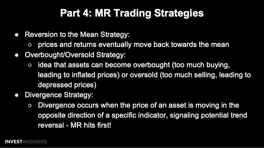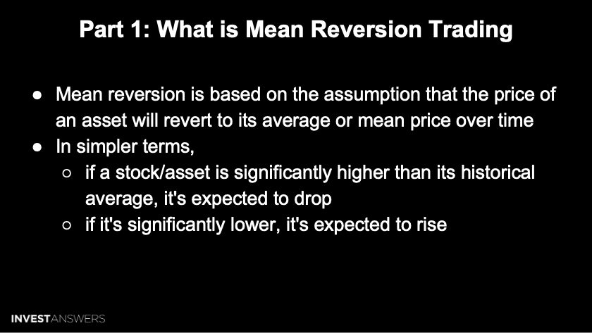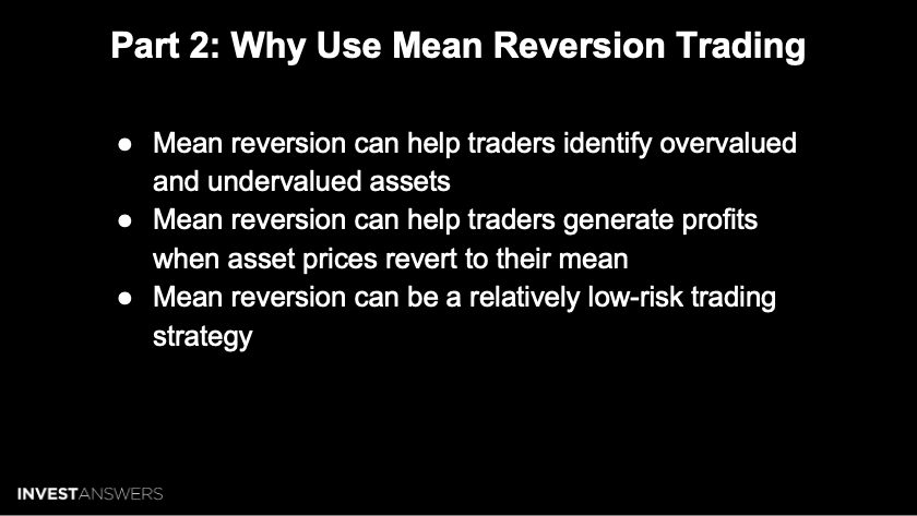 Usage: Traders look for assets that have deviated significantly from their historical average, expecting them to revert back. For example, if a stock is trading above its historical average, a trader might expect its price to decrease.