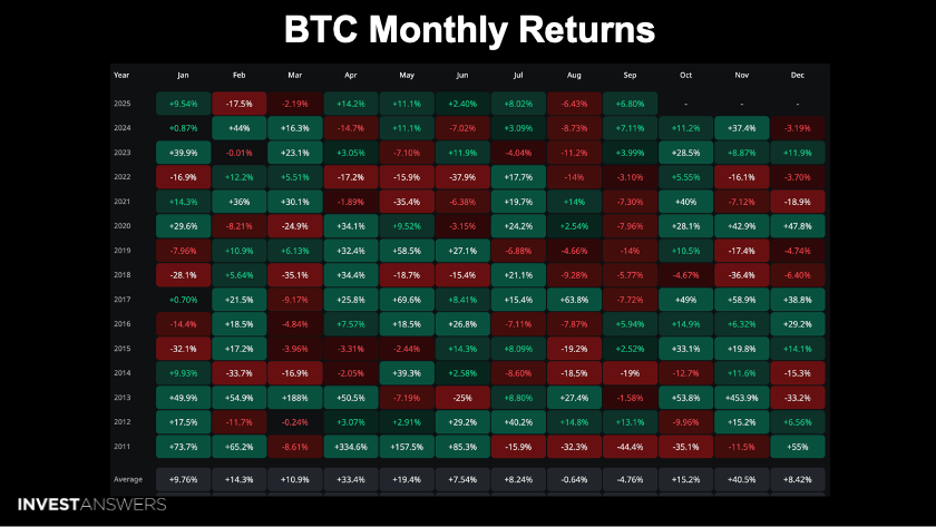 The Bitcoin monthly returns are up seven percent, and we were even higher, at eight and a half percent, until a few hours ago.