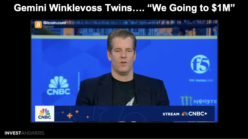 The Winklevoss twins said on CNBC that we are going to $1 million.