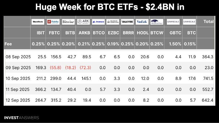 The BTC ETFs quietly sucked in $2.4 billion this week, which is massive.