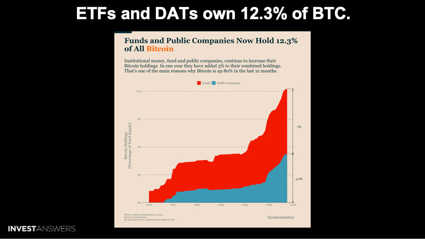 The ETFs and digital asset treasury companies now own 12.3% of Bitcoin.