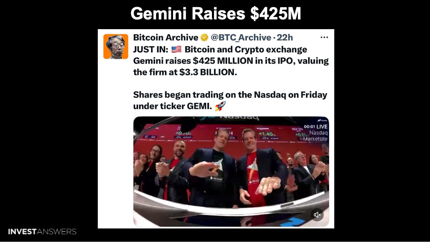 Gemini (GEMI), the crypto exchange, is now valued at $3.3 billion.